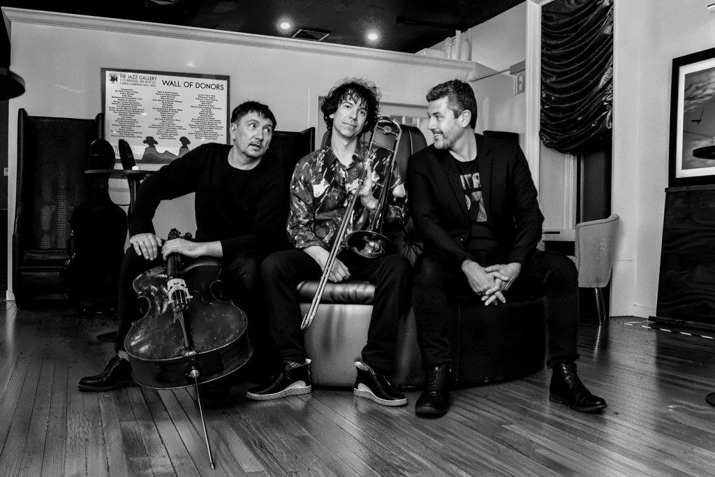 The trans-oceanic chamber jazz trio Reverso—Frank West, piano; Ryan Keberle, trombone; and Vince Curt, cello—last graced the Playhouse stage just days before the world shut down in 2020. But during and after the pandemic, they've continued their Franco-American explorations of the jazz and classical crossroads first mapped by late nineteenth- and early twentieth-century figures like Ravel, "Les Six," and, most recently—the focus of a brand-new album (their sixth), Between Two Silences—Eric Satie.